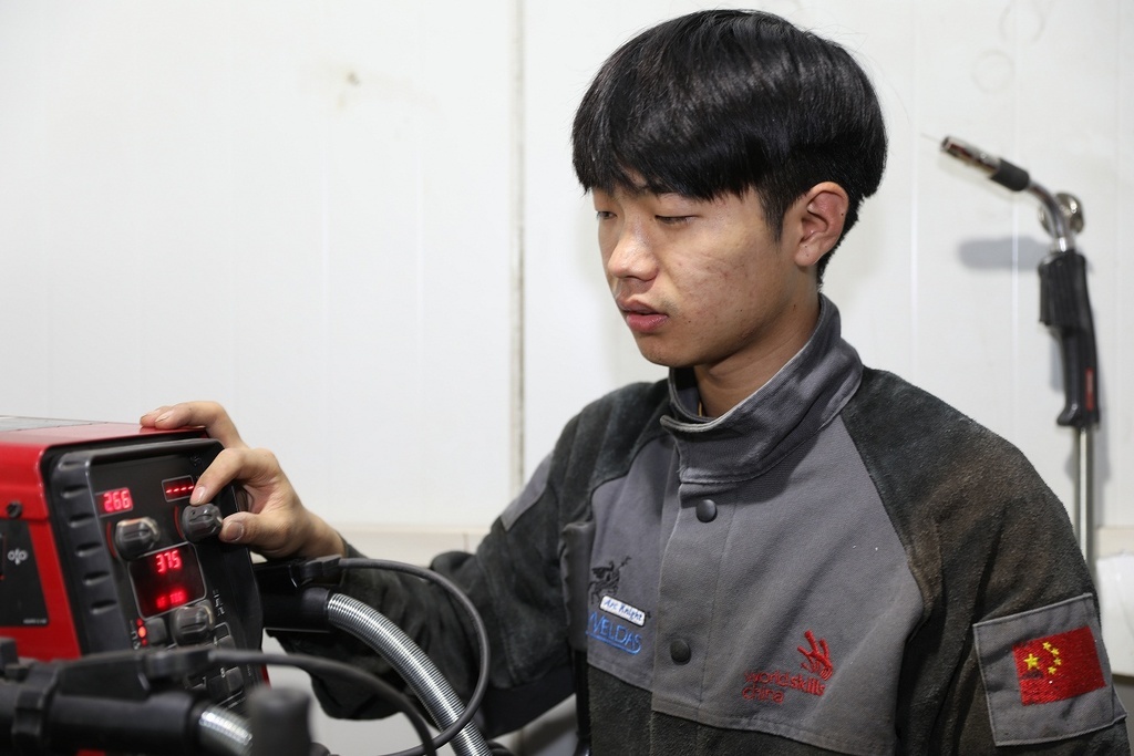“很荣幸来参加这次活动,有点紧张,也很激动。”赵脯菠介绍,他来自四川省凉山州会理县的一个小山村,16岁那年,出于对焊接工作的好奇选择了焊接这一专业。第一次穿上厚厚的防护服,戴上防护面罩,他感受到了常人难以感受的艰辛。焊接时,跳跃的焊花温度高达几百上千摄氏度,即使穿着厚厚的防护服,依旧可能被灼伤皮肤。