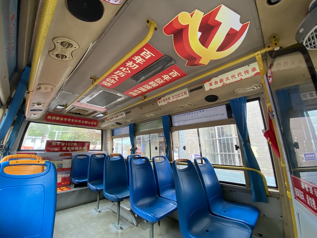 原来,为了更深入地开展党史学习教育,除了在社区开设主题党课、开展多种主题党日活动,社区工作人员瞄准居民们每天生活离不开的102路社区公交车,萌发了打造一辆党史学习巴士,为辖区党员群众营造红色文化学习氛围的想法。