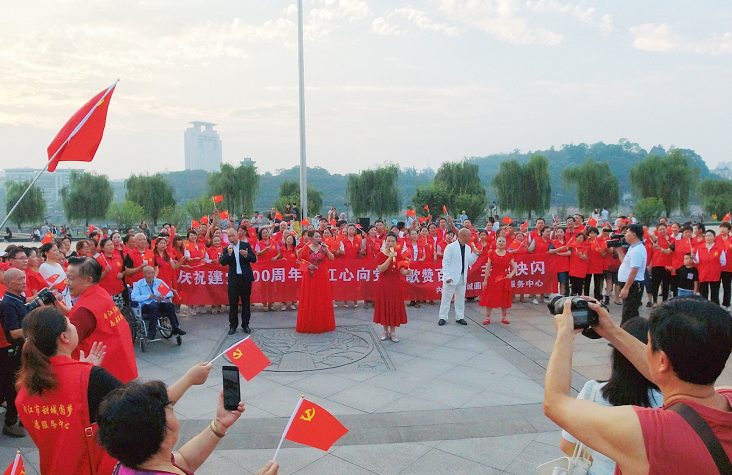 6月27日晚上7点10分,“红心向党 歌赞百年——庆祝中国共产党成立100周年主题快闪活动”在内江市市中区大洲广场举行。