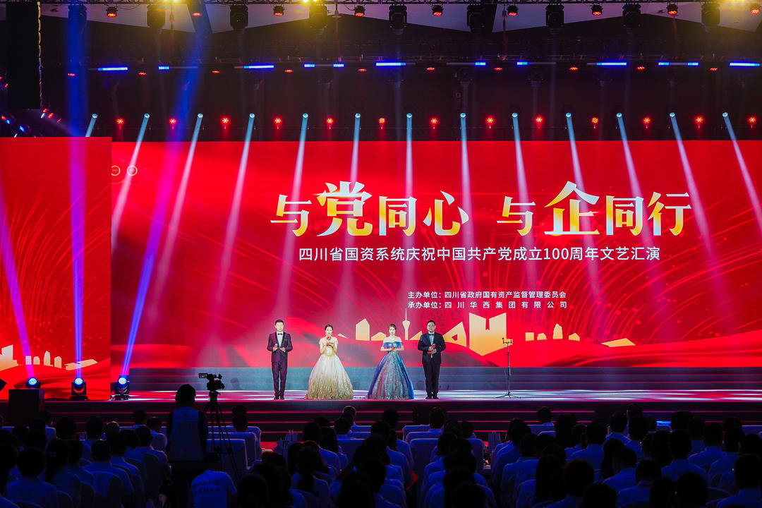 为庆祝中国共产党成立100周年,共忆峥嵘岁月、同庆百年辉煌,激励四川国企“奋进十四五、建功新时代”,6月28日,四川省国资系统“与党同心·与企同行”庆祝中国共产党成立100周年文艺汇演在成都精彩上演。此次汇演由省国资委党委主办,华西集团承办,全省国资战线共1400余人参与。