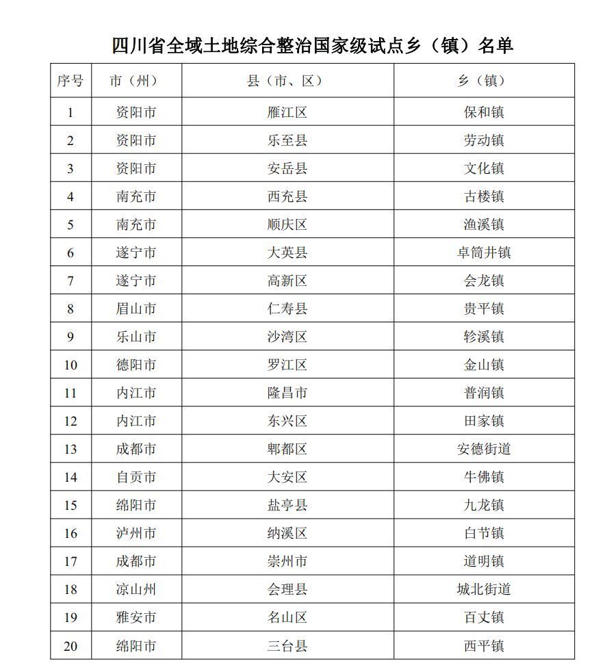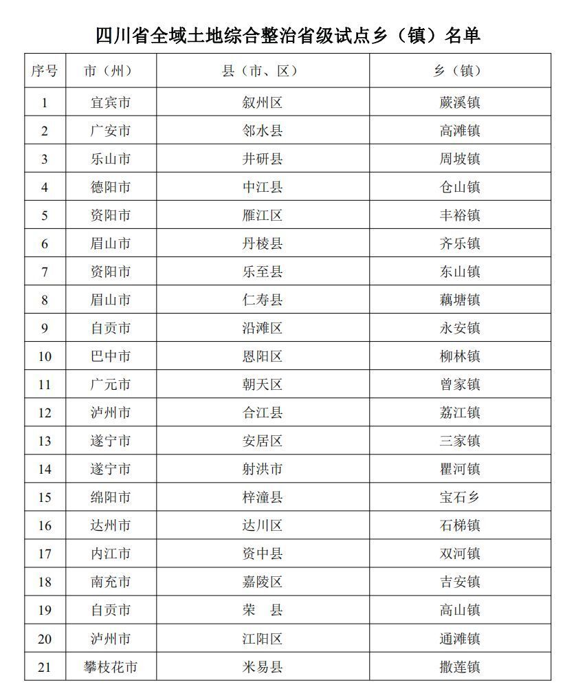 6月29日,记者从四川省全域土地综合整治试点工作部署视频会获悉,去年以来我省启动实施全域土地综合整治,已确定包括卓筒井镇在内的20个国家级试点乡镇,和宜宾市叙州区等21个省级试点乡镇。