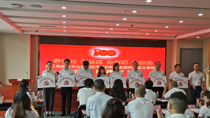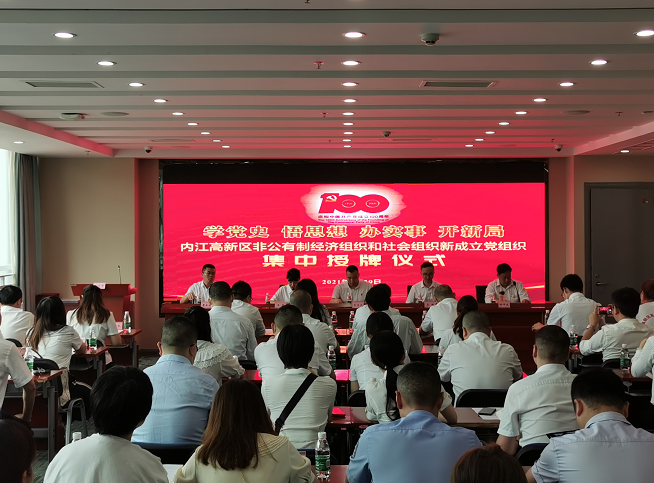 为深入推进非公有制经济组织和社会组织党组织建设工作,6月29日,内江高新区非公有制经济组织和社会组织新成立党组织集中授牌仪式在汉安孵化器举行。
