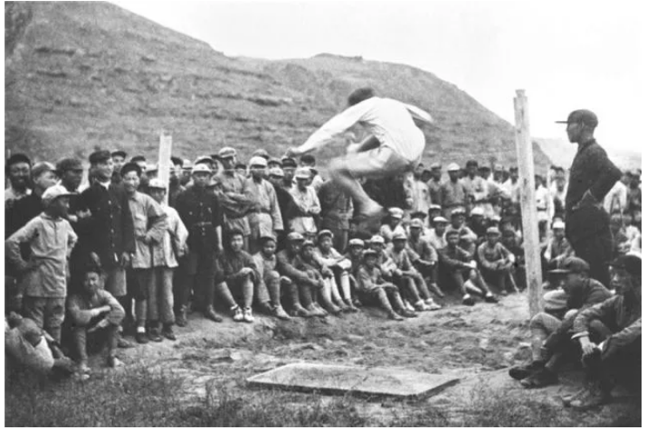 红军战士在跳高(资料照片)。新华社发(埃德加·斯诺摄)