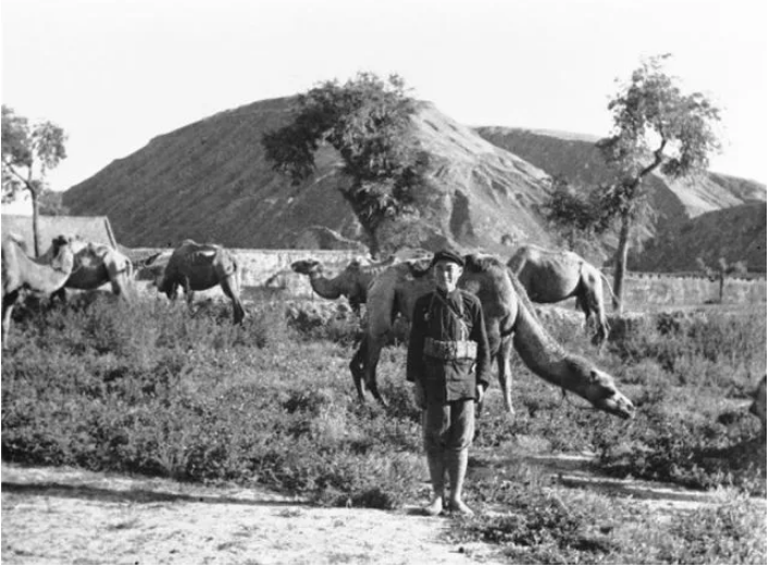 红军与红军的运输工具之一骆驼(资料照片)。新华社发(埃德加·斯诺摄)