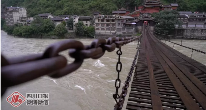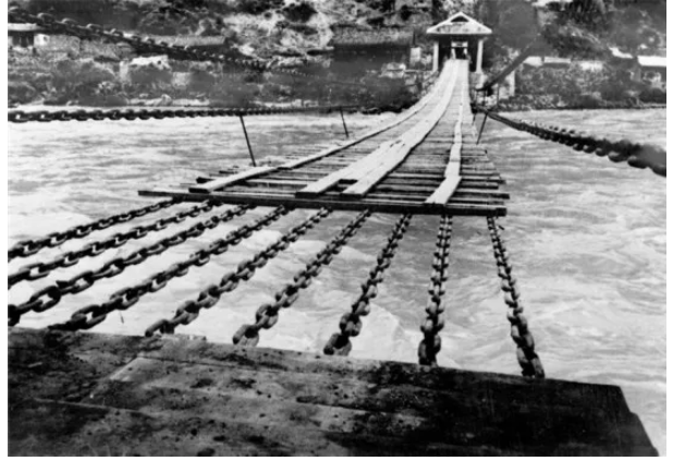 这一段长100余米,宽2.8米,高14.5米的铁链,至今仍然还横跨在大渡河上。