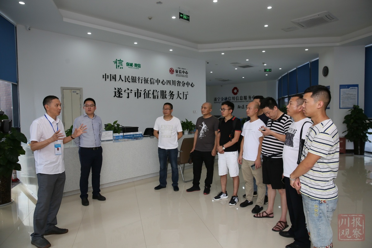 “扫描个人身份证,在摄像头前留下个人正面照,并输入手机号码,不到1分钟,一份包含公民基本信息及信贷还款记录的个人信用报告就能打印出来。”走进与创客小镇毗邻而居的金融小镇,采风团一行详细了解了遂宁金融信用信息服务中心的征信服务,并听取了服务中心工作人员的情况介绍。