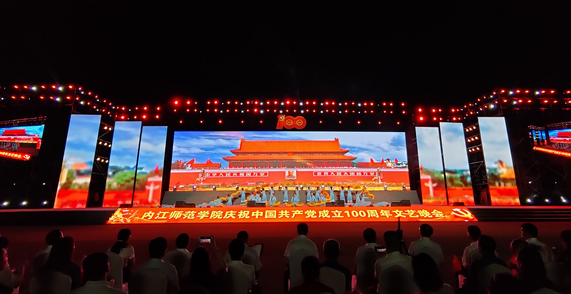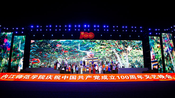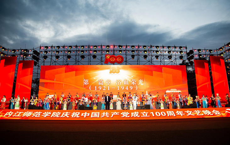 6月29日晚,内江师范学院庆祝中国共产党成立100周年大型文艺晚会举行。整场以中国共产党百年历史为主线,以经典曲目为载体,以高度的历史概括和综合艺术形式生动再现中国共产党100年来在危难中崛起、在拼搏中奋进的光辉历史。