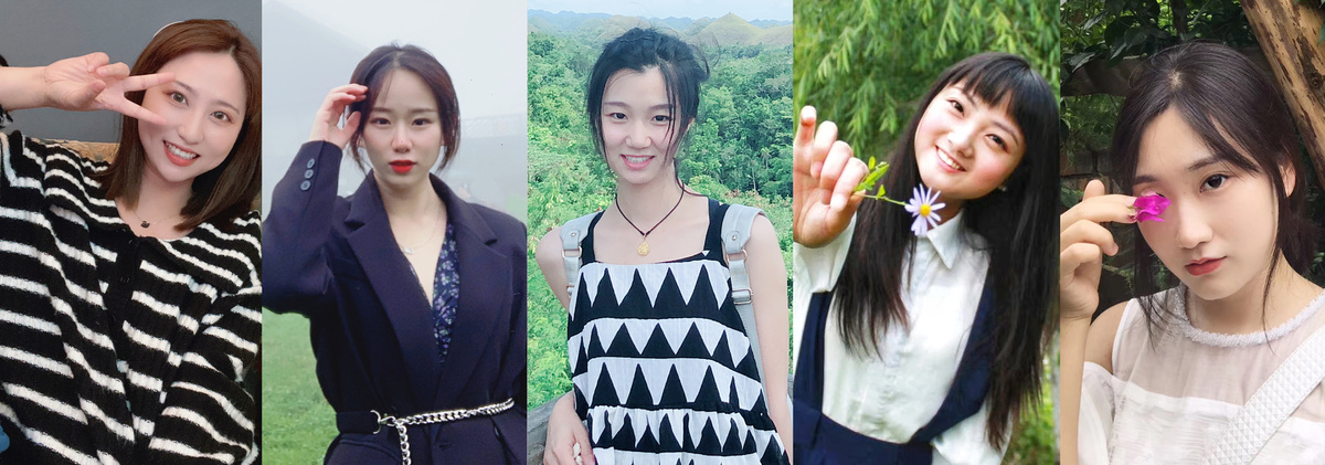 月华镇“乡村女团”五美(左起分别为张琳巧、包琳匀、贺柳、陈璨、杨莉萍)