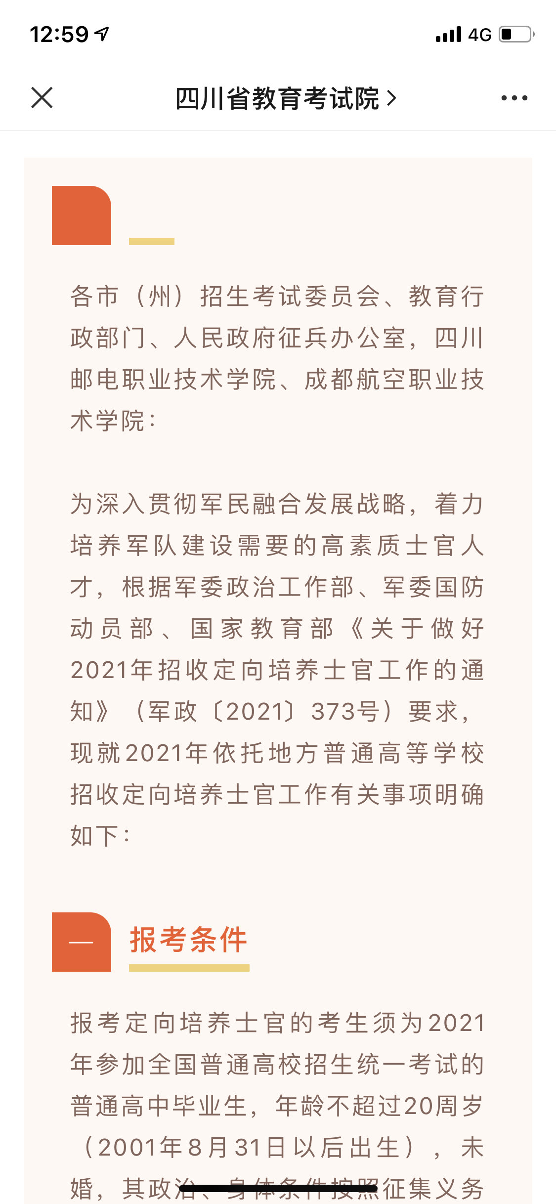 6月30号,川观新闻记者从省教育考试院获悉,四川2021年招收定向培养士官1029人,将在专科提前批次录取。详情如下: