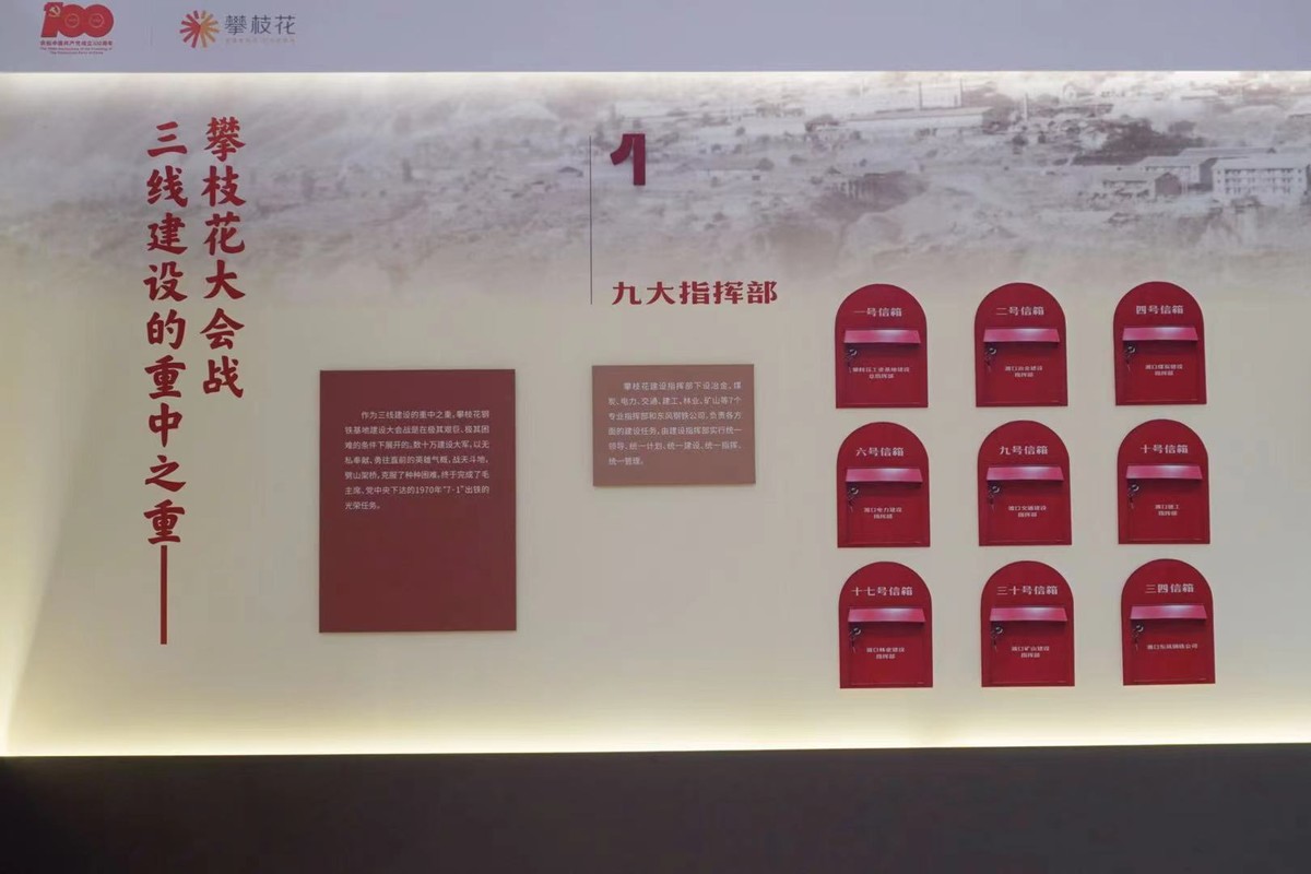 攀枝花是一座因三线建设而生的新兴工业城市,也是一座有着光辉历史传统的英雄城市。在中国共产党的坚强领导下,一步步实现由钢铁之城向钒钛之都、由工矿基地向康养胜地、由传统三线建设城市向区域中心城市的重大转变。为了充分展现这些变化,主题展共分为“百年党史铸辉煌”“三线建设树典范”“砥砺奋进开新篇”三个单元,面积约1300平方米的展厅内,400余张历史图片和来自攀枝花中国三线建设博物馆的文物,缓缓诉说与城市建设共同生长的三线故事,生动展现中国共产党的百年光辉历程、攀枝花开发建设56年来的巨大成就。