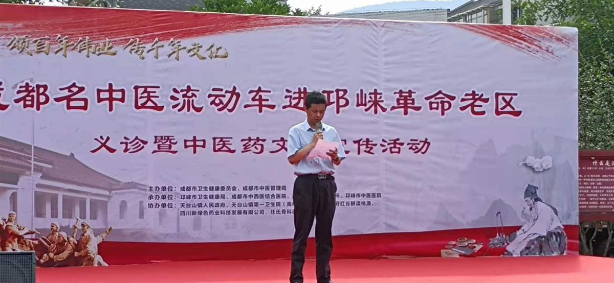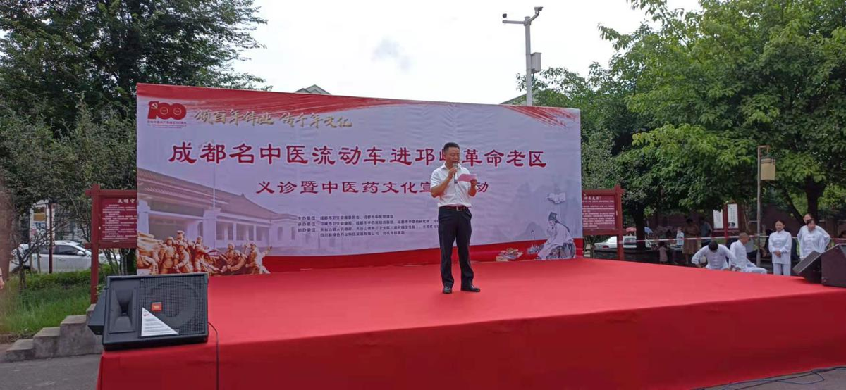 6月29日,为庆祝中国共产党成立100周年,全面贯彻落实《中医药法》颁布实施4周年,由成都市卫生健康委、成都市中医管理局主办的“颂百年伟业 传千年文化——成都名中医流动车进邛崃革命老区义诊暨中医药文化宣传活动”在邛崃天台山镇文化广场隆重举行。