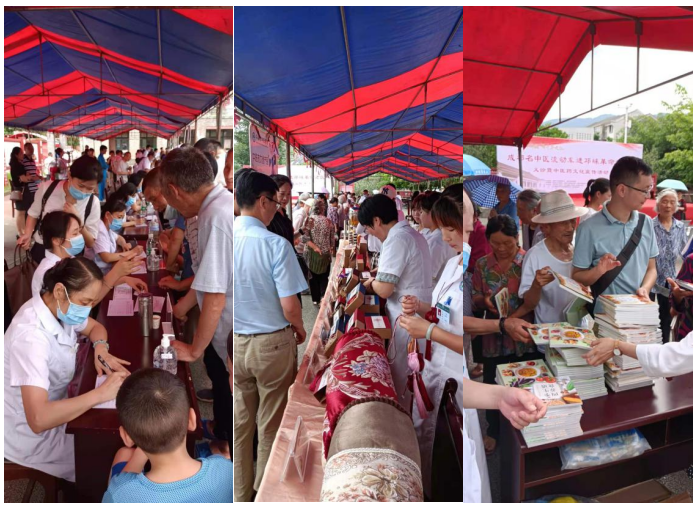 活动现场气氛热烈,来自邛崃天台山镇和邻近乡镇以及名山县、芦山县的450余名群众参与了活动。在名中医义诊区,医生们结合多年临床经验,对群众需求集中、关注度高的慢性病、肿瘤、儿童疾病、地方病等重点问题进行现场解答并开出中药处方,有200余名群众参加了义诊。在中医适宜技术体验区,有60余名群众亲身体验了刮痧、灸疗、推拿、拔罐等传统中医疗法的独特效果。在中医药大健康讲座区,拥有百余人座位的讲堂座无虚席,聆听来自成都市中西医结合医院和邛崃市中医医院两位专家宣讲的中医药夏季养生科普知识讲座。在中医药文化宣传展示区,300余名群众们纷纷驻足了解品尝养生茶饮,免费领取香囊,了解邛崃市中医医院展示的各类膏、丹、丸、散、茶、酒等健康产品,领取《四季养生食谱》《小厨房大健康》《养生茶饮》《中医药健康处方》以及中医药宣传单等中医药养生保健资料800余份。主办方还免费为群众提供了现场专家所的开处方配方中药240余副。