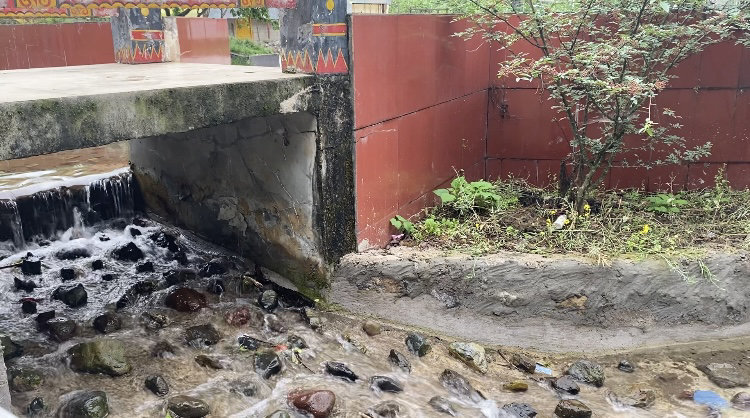 走过一座装饰着彝族图案的桥,迎面而来的是一座由三根柱子和展翅雄鹰构成的寨标,上面分别用彝汉两种文字写着村名——解放村。寨标旁的堡坎也增加了新的功能,变成了文化墙。分别绘着彝家生产生活、历史传说故事。沿着文化墙继续前行,便进入到村子里。