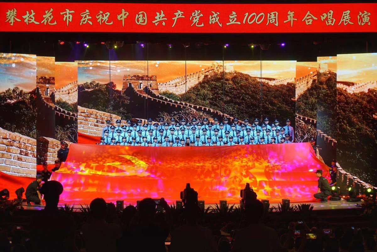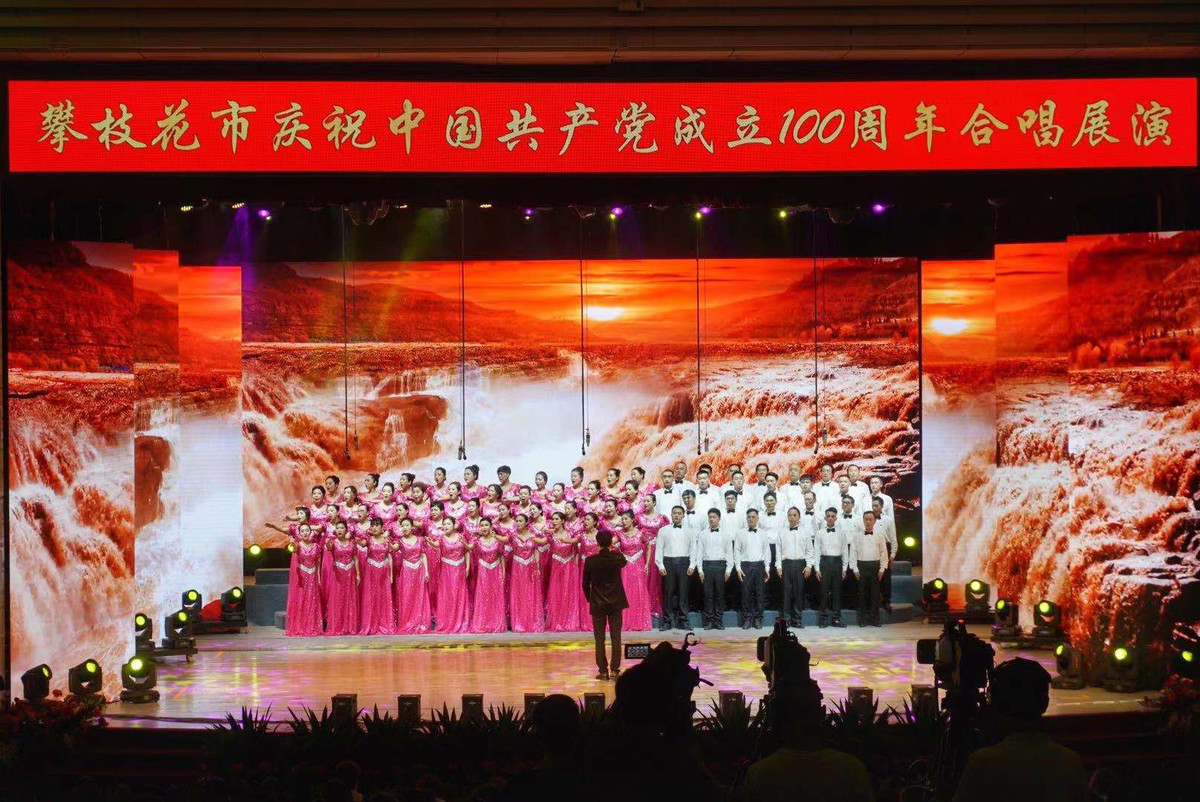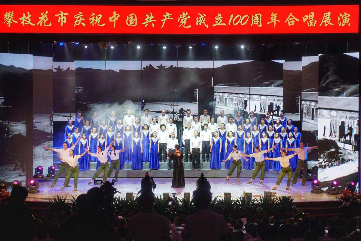 6月30日晚,攀枝花市庆祝中国共产党成立100周年合唱展演在攀枝花学院举行,2000多名观众和合唱队员共同唱响歌曲,献礼建党百年。