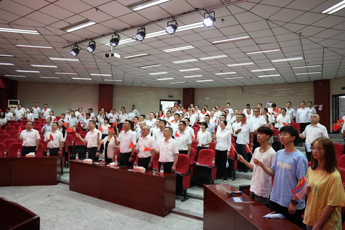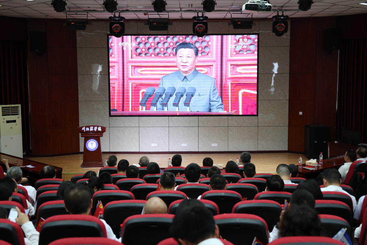 今日8时整,庆祝中国共产党成立100周年大会在北京天安门广场隆重举行。川北医学院党委领导及班子成员与机关全体党员干部职工在高坪校区图书信息大楼407教室集中收看大会直播。大家怀着无比激动的心情聚精会神地聆听习近平总书记在大会上的重要讲话。与此同时,学校各院系师生、各附属医院及直属单位干部职工也通过各种形式收听收看大会盛况,共同见证这一举世瞩目的历史性时刻。、