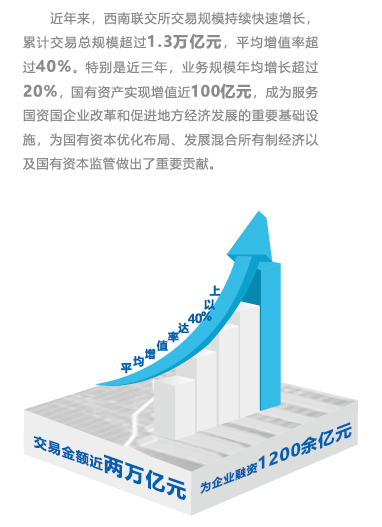 西南联交所,是我省专业从事产权交易的新型资本市场,自2009年成立以来,完成了众多具有社会广泛影响力的优质案例。比如成都军工企业,在这里寻求到了合作伙伴,成功解决了融资难题;四川上市公司,在这里取得战略重组的进展,顺利完成了国企混改;央企在川机构,通过交易平台发现市场价格,高价处置了闲置资产......
