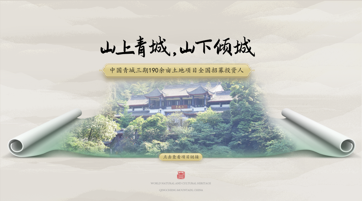 中国青城项目,就是以世界历史文化遗产地——青城山为基点,利用其位于青城前山东麓、丈人峰下的原始的坡形地貌、天然的河流、湖泊以及数千棵原生古树等自然资源,打造出的一个“依坡而建,隐林而居,畔湖而栖”的800余亩的国际观光休闲度假小镇。尚有可开发土地约190余亩地处核心景区环山渠道路以内的生态观光圈层和休闲养生圈层,项目用地目前是上述圈层内唯一一块“稀缺”用地。现面向全国招募投资人,入驻青城山商业版图,共谋商业理想!