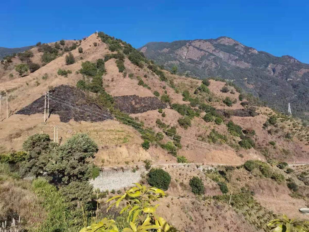 7月2日,站在攀枝花市东区银江镇双龙滩村高位水池向远方望去,对面半山腰上,一条“黑丝带”十分醒目。