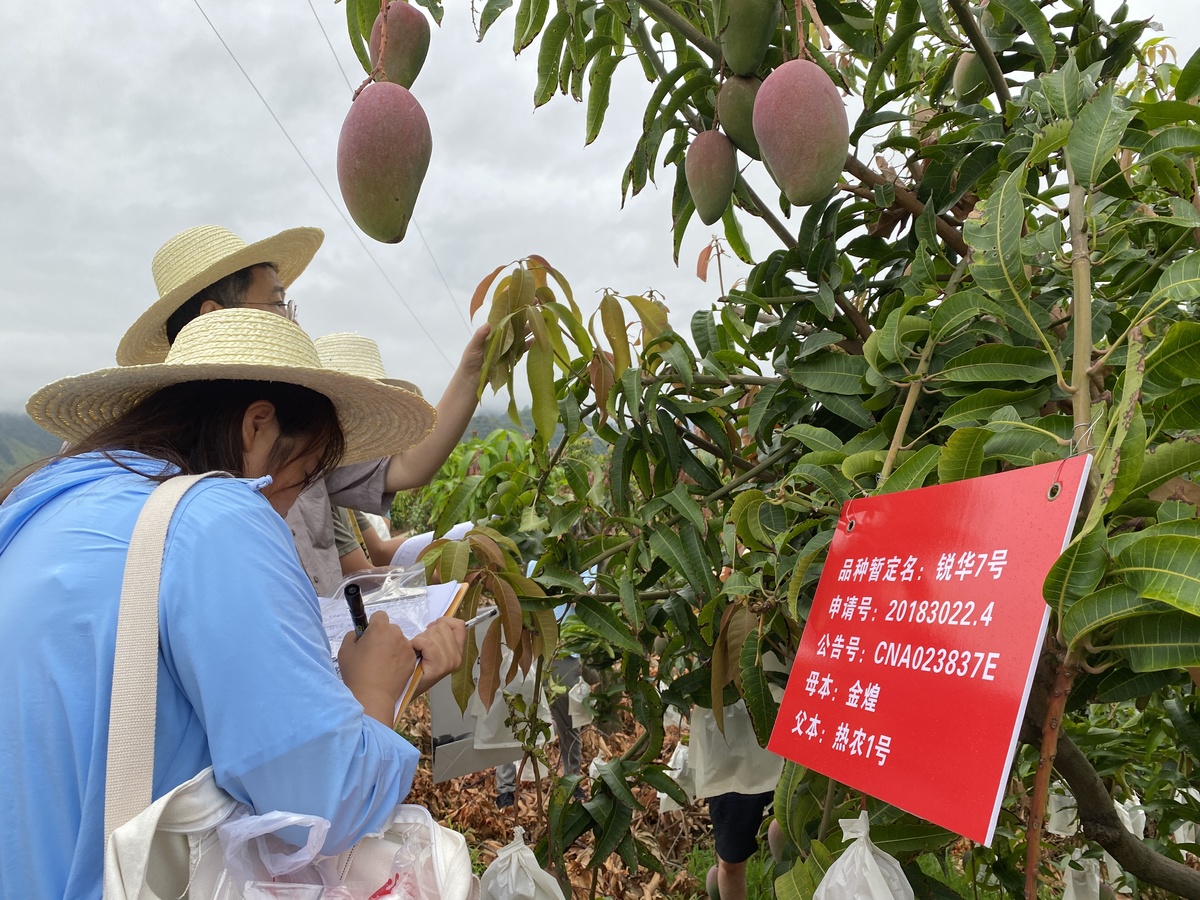 量“身高”、测“体重”,对比叶片,还要检测DNA。7月3日,雨后山间薄雾缭绕,位于攀枝花市盐边县桐子林镇金河村的芒果现代农业园里,农业农村部科技发展中心和农业农村部新品种测试成都分中心组成的专家团对攀枝花市申报的18个芒果品种进行现场考察。
