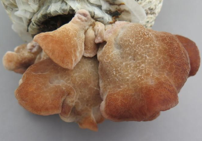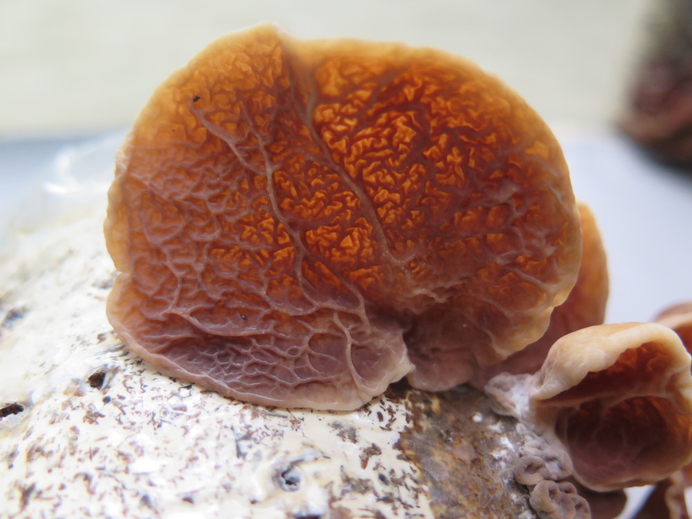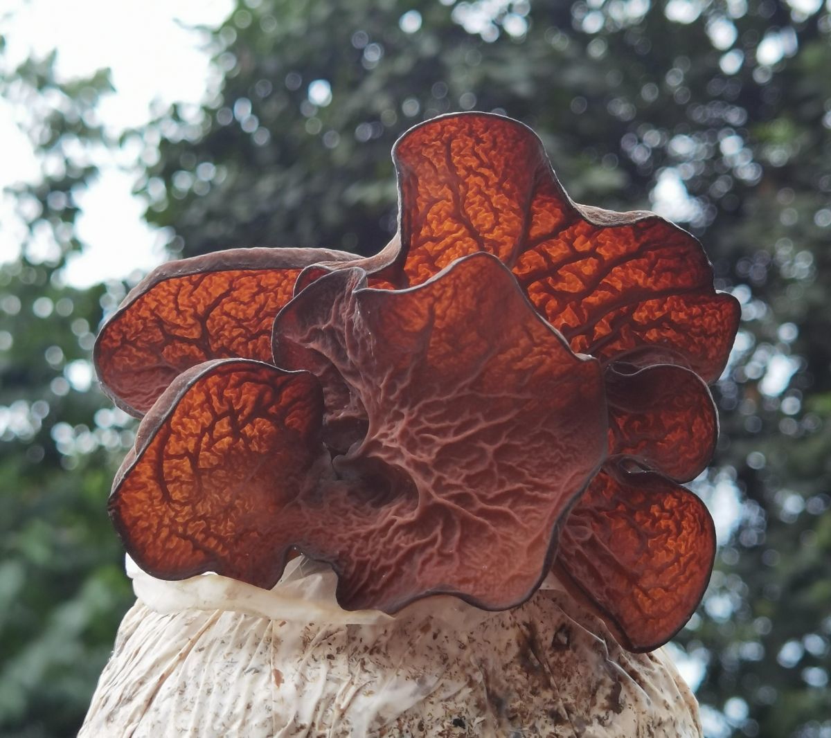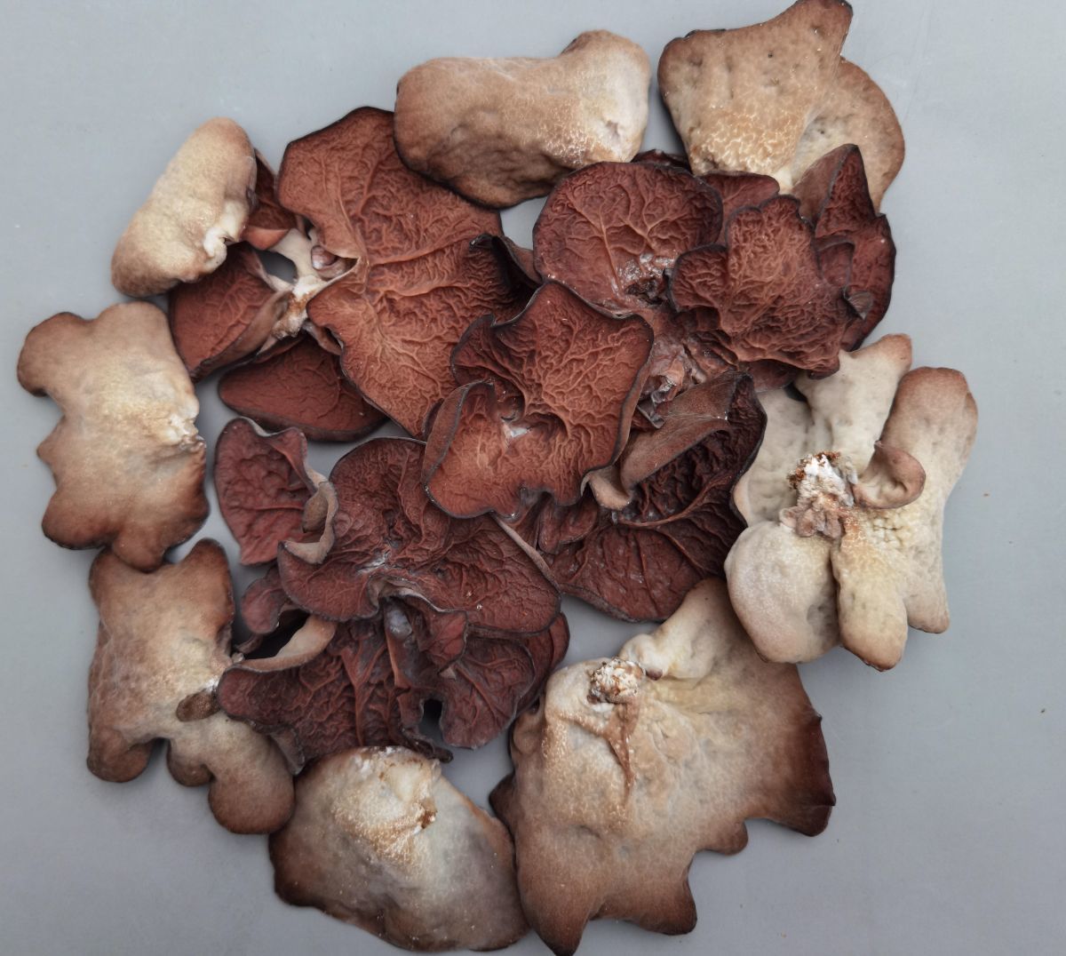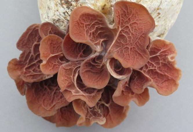 这个新木耳,鲜耳耳片腹面布满脉状皱褶,呈棕红色,背面为棕灰色。