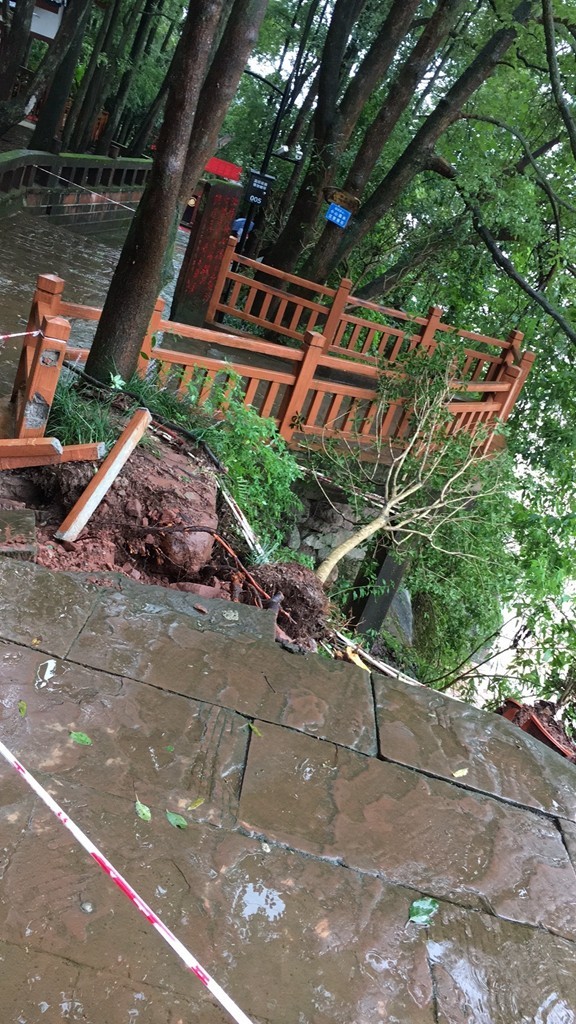 8月6日,乐山暴雨导致夹江县千佛岩景区万象亭被山洪冲毁。目前景区已关闭,暂无人员伤亡。