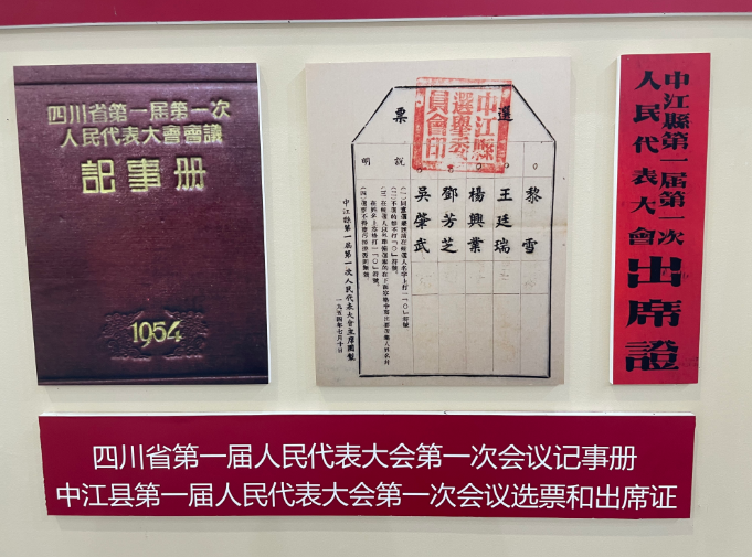展览现场,一张1954年中江县第一届人民代表大会第一次会议选票的扫描图片,向观众展示了邓芳芝从英雄母亲到人大代表的转变。