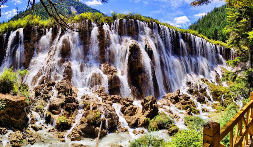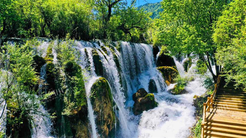 诺日朗瀑布瀑宽270米,高24.5米,是我国大型钙华瀑布之一,也是我国最宽的瀑布。藏语中诺日朗是伟岸高大的意思,诺日朗瀑布的意思就是“雄伟壮观的瀑布”。