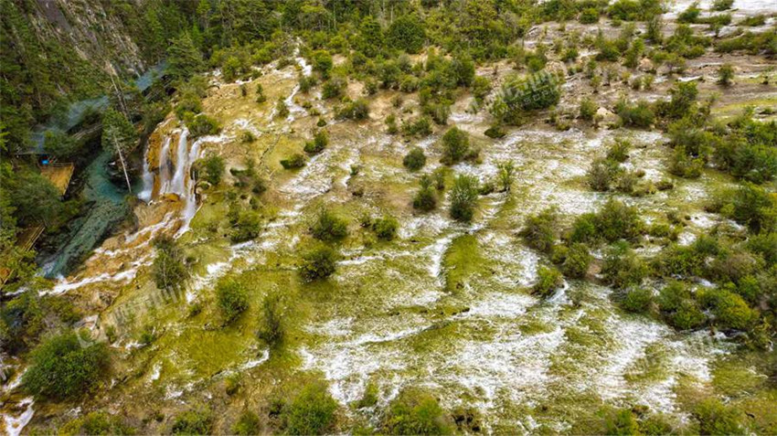 受“8·8”九寨沟地震影响,诺日朗瀑布岩层出现了局部崩塌,瀑布上方出现了长16.8米、宽50厘米的裂缝。水流一度不复往日。
