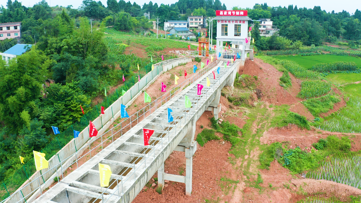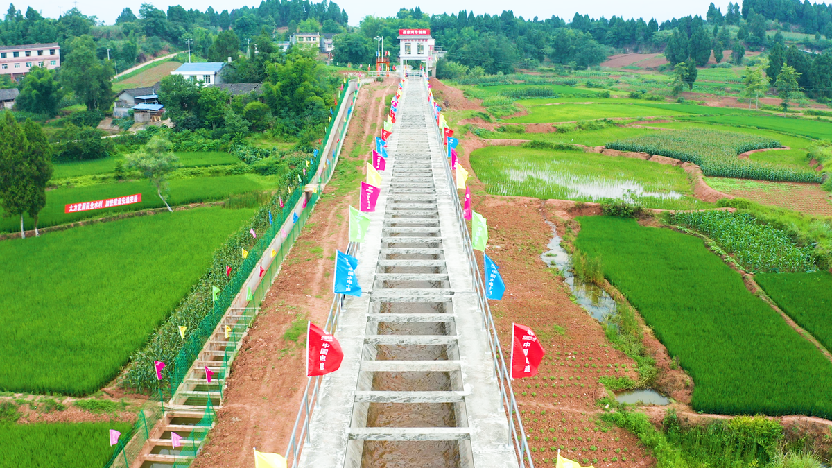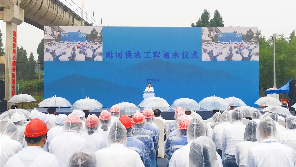 7月6日上午,毗河供水工程通水仪式举行,在位于遂宁市安居区保石镇石湾村的分会场现场,潺潺水流从聂家渡槽上顺流而下,涌入泄水渠中,标志着毗河供水一期工程遂宁段工程完成通水。