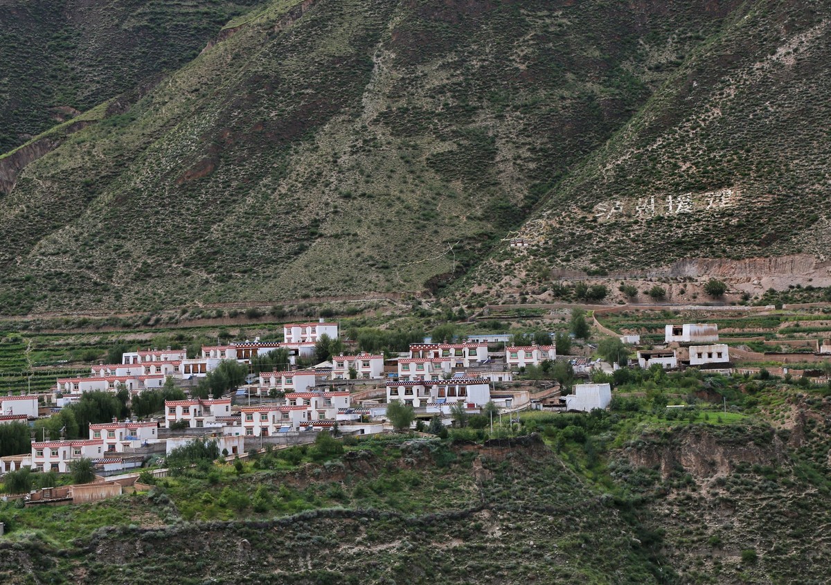 洞松乡松通牧民定居点提升打造工程,改善了定居点房屋附属设施、移民点道路、村内绿化亮化及配套产业,惠及农牧民群众20户145人,当地群众自发在定居点后山坡上嵌绘了“泸州援建”醒目大字。