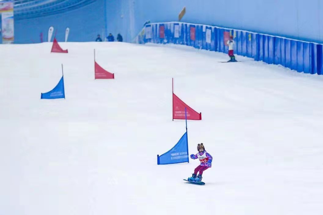 7月7日,“中国体育彩票杯”2021年四川省青少年单板滑雪平行大回转锦标赛在全球最大室内滑雪场——都江堰市融创雪世界拉开帷幕。共有来自全省各地市(州)14支代表队近40名滑雪运动员在赛场展开激烈角逐。