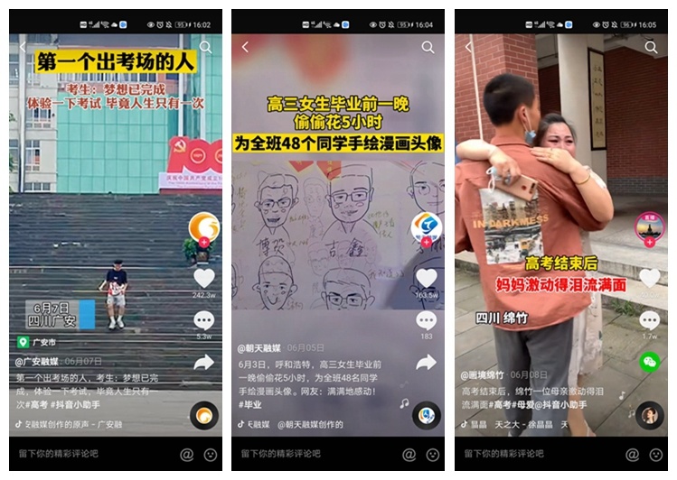 高考是6月热点,相关话题关注度高。在本期指数点赞量前100的抖音视频中,有17条和高考相关。其中,抖音号“广安融媒”原创视频《第一个出考场的人,考生:梦想已完成,体验一下考试,毕竟人生只有一次》点赞量超242万,位列第一,取得了良好的传播效果。