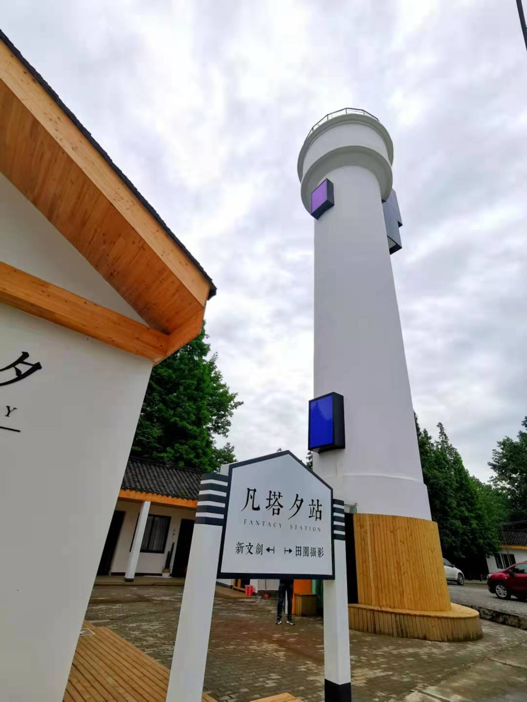 稻香弥漫的田野上,绘画着彩色涂装的水塔,成为显眼的“标志性建筑”;孩子们在游乐区玩耍,家长们挑选着文创产品,村民们前来办理行政事务……如果不是真正走进,谁又能想到,这里是崇州一处农村社区的党群服务驿站。