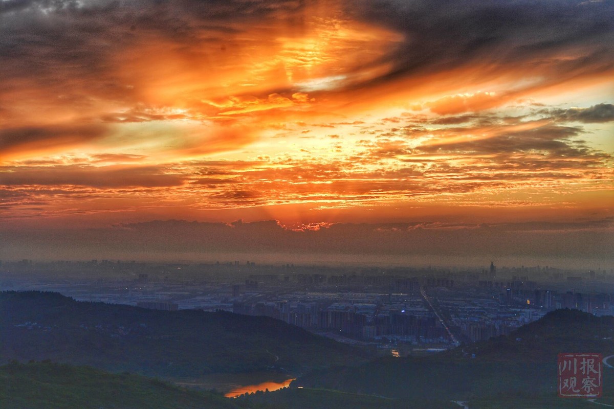 8月9日,一轮超级晚霞在不经意间出现在成都市区,在龙泉山森林公园远眺,远山,晚霞,夜景,让人大饱眼福。