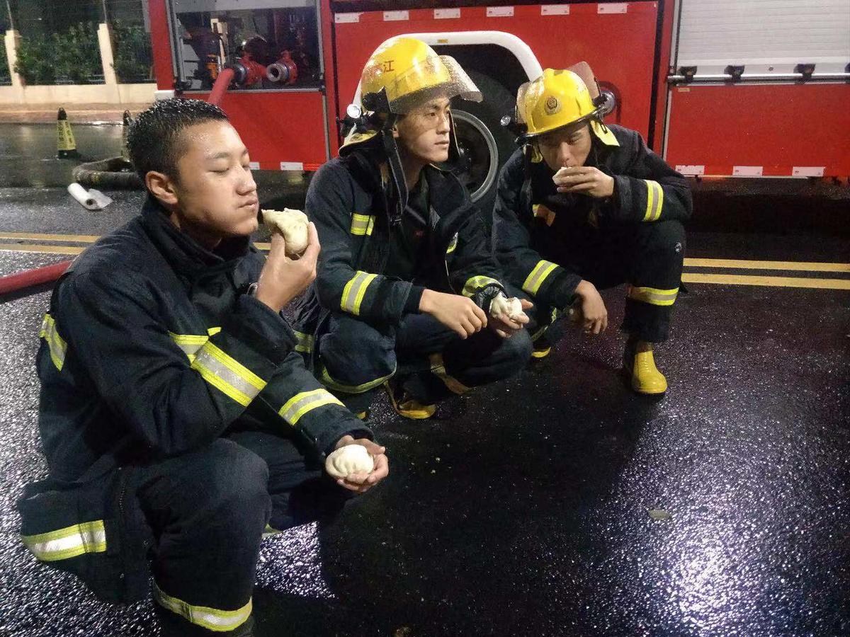 很快吃完包子后,吉侯牛培和战友们又开始投入到排涝工作中,一直奋战到第二天凌晨近4点才回到中队休息,排涝救援约12个小时。