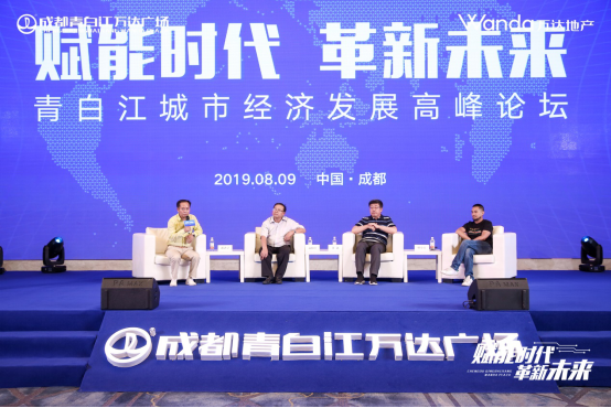 论坛现场,四位嘉宾共同上台,就青白江经济形势、青白江区域发展、青白江万达广场的商业价值等进行深入探讨。