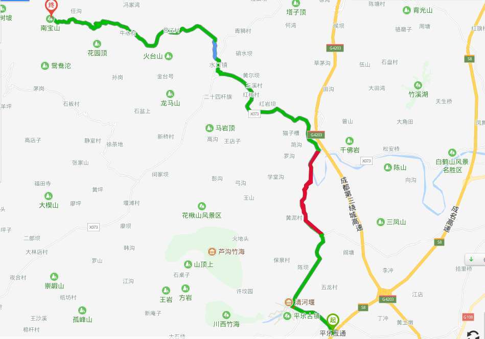 成都交警温馨提示,从雅安方向到南宝山旅游的游客导航至成名高速邛崃西出高速,再经由邛窑大道、邛水路行至南宝山旅游景区。