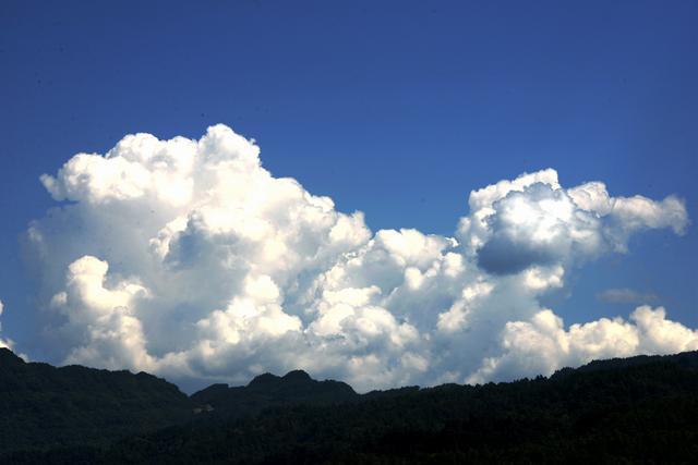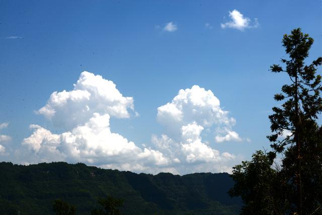 立秋后,四川省巴中市通江县迎来了一个又一个蓝天白云,碧空如洗的好天气,从小魏路上远望,湛蓝的天空澄澈如一面明镜,群山之上漂浮着朵朵白云,蓝天、白云、绿水、青山相互辉映,展现初秋景象。程聪摄