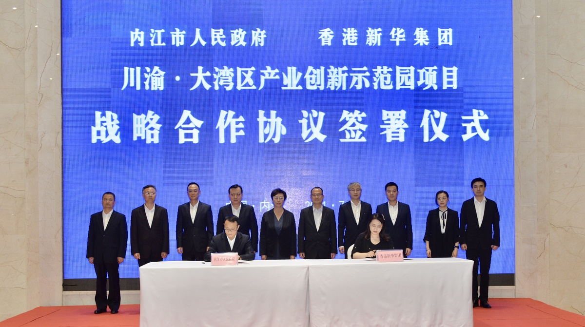 这已经是2018年双方首度牵手以来的第三次合作。2018年该集团落子内江,在“川港澳合作周”中与内江成功牵手,目前正快速推进“蓉欧+东盟国际物流基地”“内江新华国金中心”、内江“数字未来城”等一批引领性强、带动性强、支撑性强的重大项目。在良好的合作基础上,双方共同打造“川渝·大湾区产业创新示范园”将致力于推动形成更多务实成果、实现互利共赢发展。