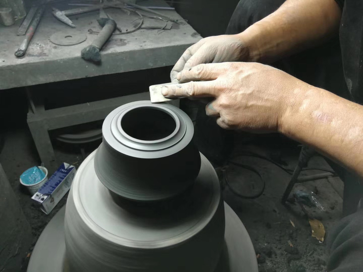 就在这个时候,早年间在国营砂厂的制砂经历给困惑中的曾庆红指出了方向。“以前国营砂厂里主要生产的是砂锅一类的生活器具,但偶尔也会生产一些以黑砂为原材料的工艺品,我当时对这一块还挺感兴趣的,”曾庆红说,于是在保持传统的生活用品砂器生产的同时,他开始试着做一下茶具、黑砂工艺品等。
