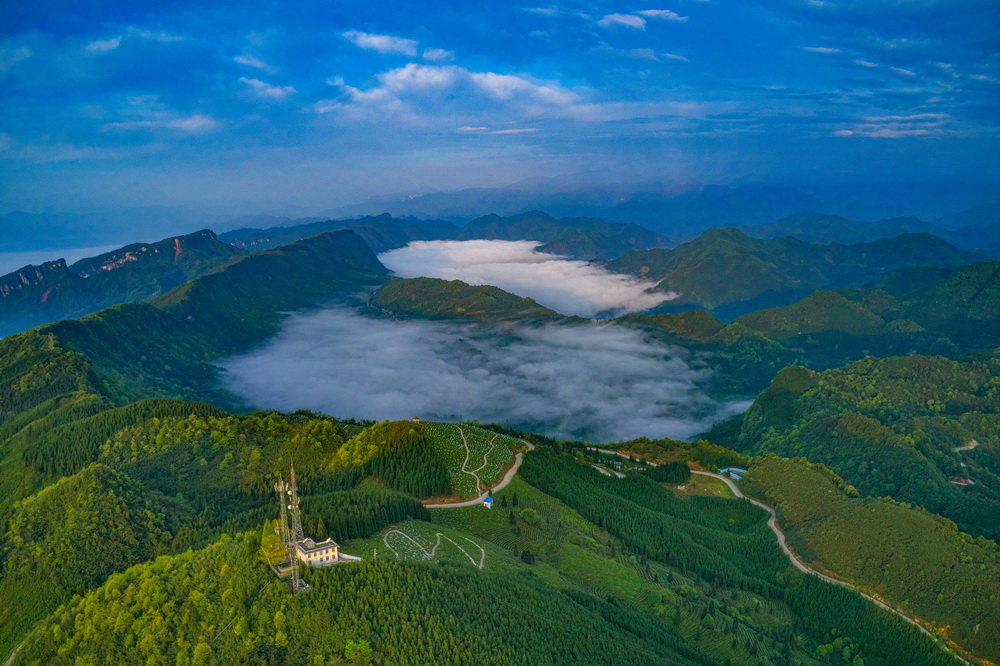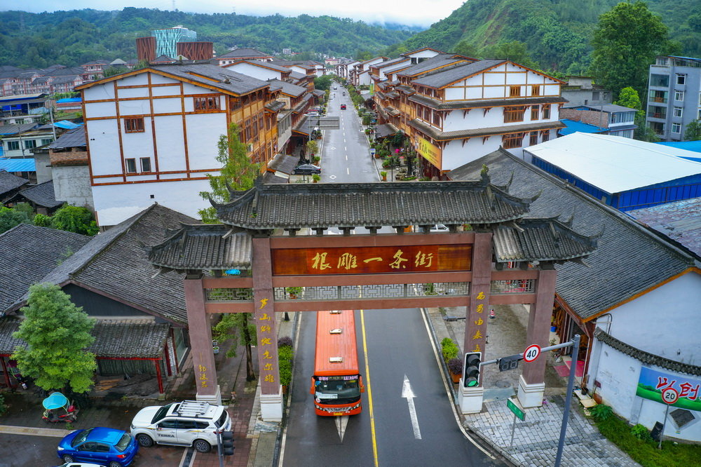 航拍芦山根雕一条街。芦山盛产乌木,在清风雅雨和乌木古香多年的浸润下,这里成为全国最大的乌木根雕市场。黄刚 摄