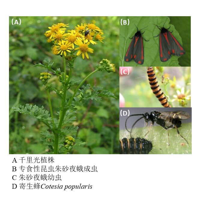 为了证明这一观点,该团队对本地和外来入侵不同种群的植物千里光、这种植物的专食性昆虫朱砂蛾及其寄生蜂、广食性昆虫甘蓝夜蛾展开了研究。