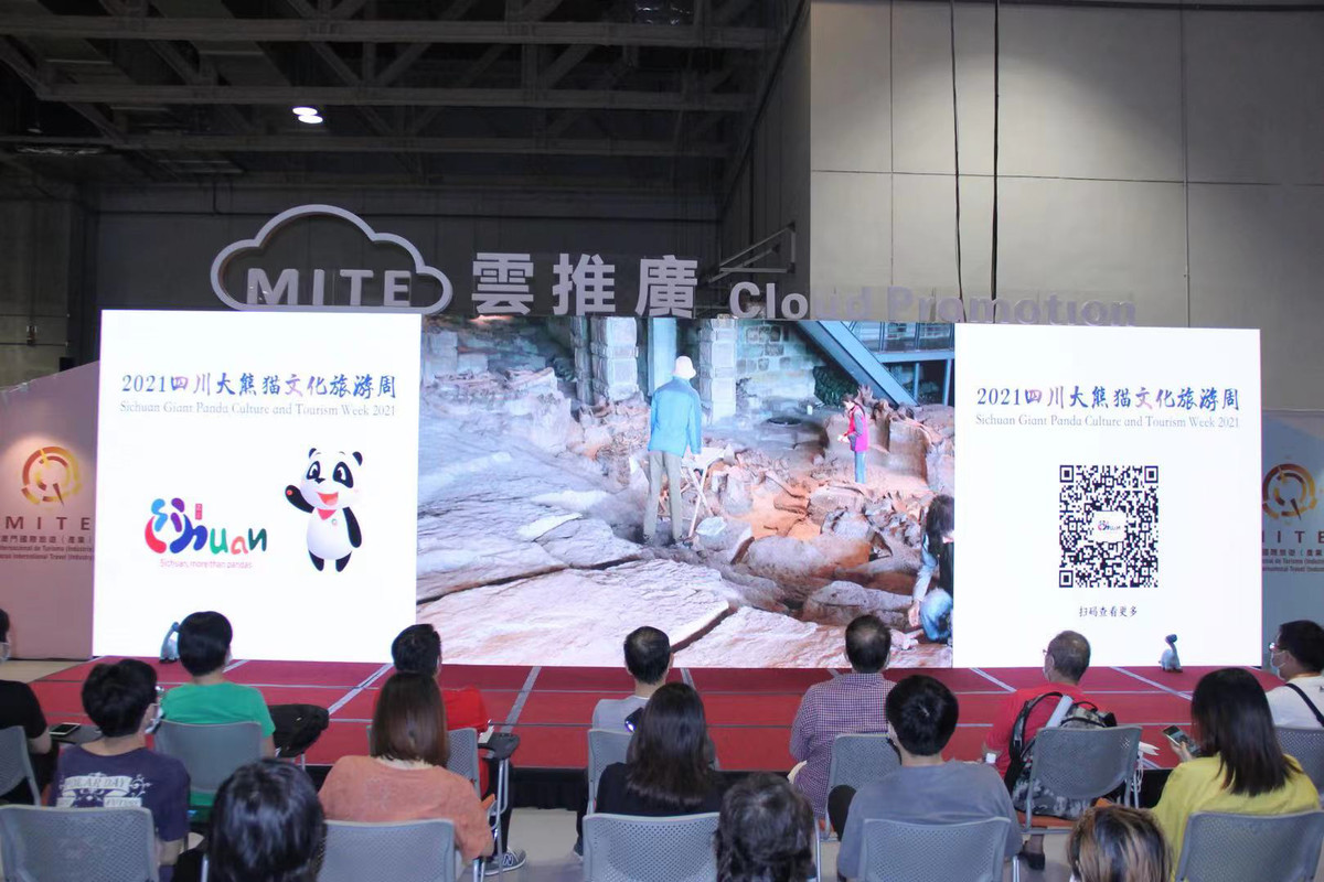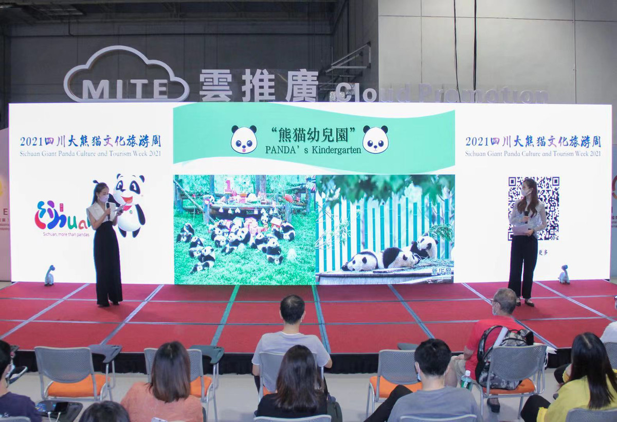 7月10日,2021年四川大熊猫文化旅游周借助旅博会"云推广"平台连结全球旅游业界,线上推介四川特色文旅资源,并通过现场连线的方式与观众互动,同步直播。