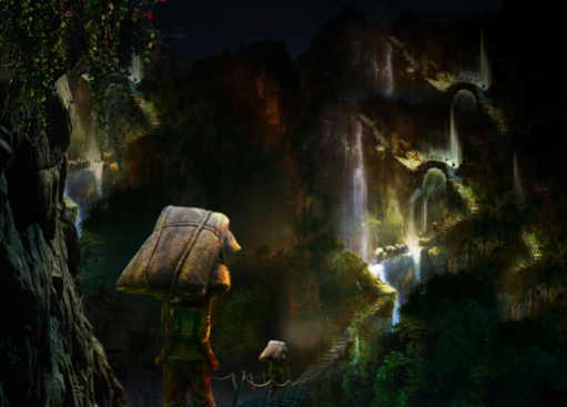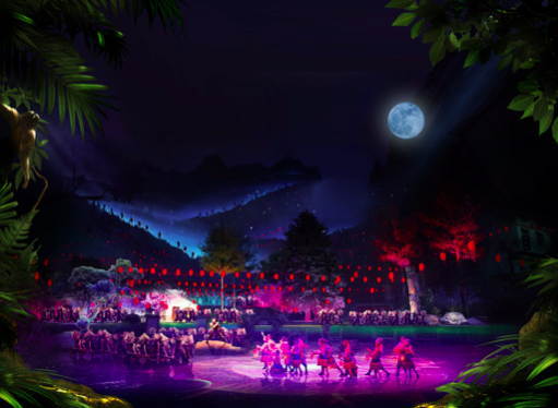 在故事内容方面,《梦境光雾山》汲取巴山厚重的历史文化精髓,把《巴山背二歌》非物质文化遗产作为演出视觉核心概念,在米仓古道和神奇大巴山里讲述一段穿越历史空间的动人故事。