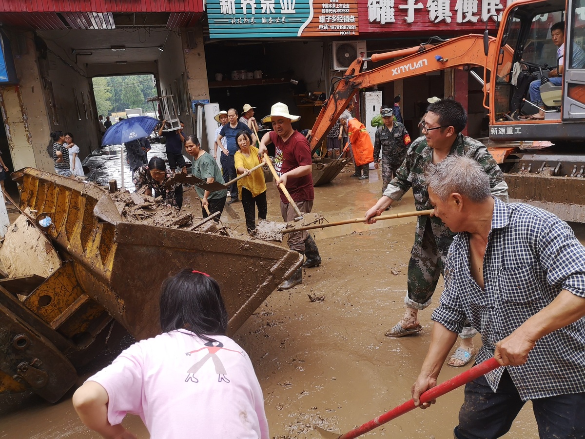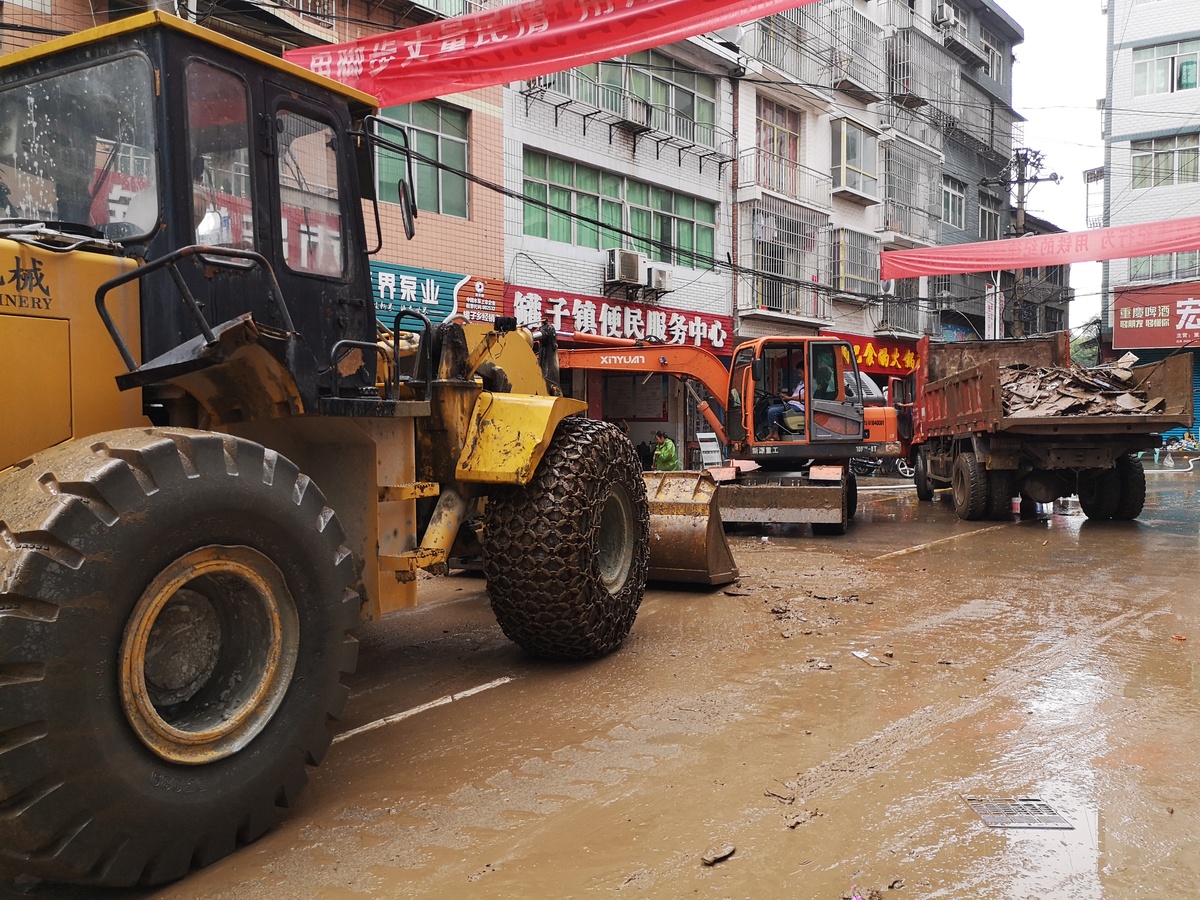7月11日15时许,川观新闻记者抵达达州市本轮降水量最多的达川区罐子镇,多台推土机、大卡车、冲水车等大型机械进入场镇,镇、社区干部群众携手清理淤泥及洪水退去后街道留下的杂物,救灾和恢复工作加快推进。
