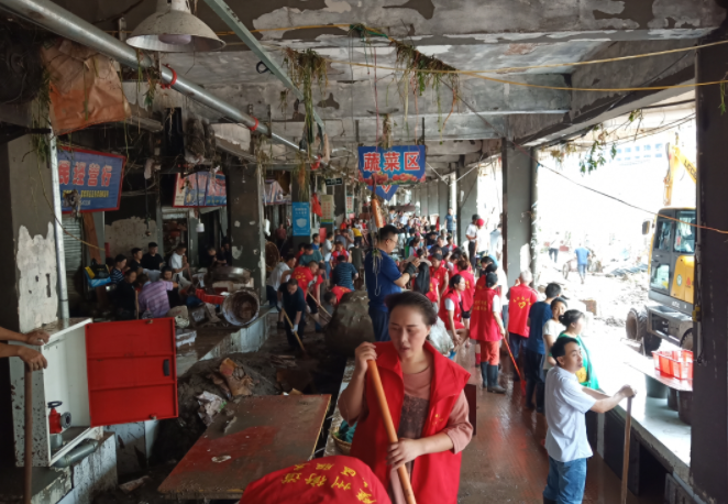 在平昌县响滩镇,7月11日恰逢当场天,场镇也恢复了往日的热闹。“收拾完了,消个毒继续干!”面对被洪水“洗劫一空”的店铺,该镇经营餐饮店老板杨平并不畏难,信心十足地表示,“即便老天跟我们作对,我们依然要坚强乐观的生活,继续加油。”