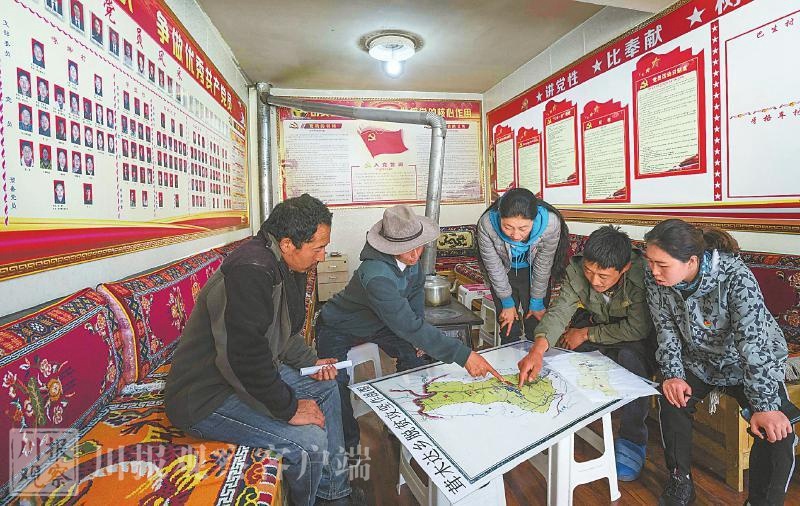 挂图作战,壤塘县茸木达乡把大骨节病综合防治和藏乡改善民生、脱贫致富结合起来。尹钢 摄