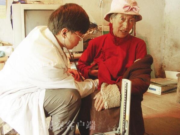 医务人员为大骨节病患者进行健康体检。