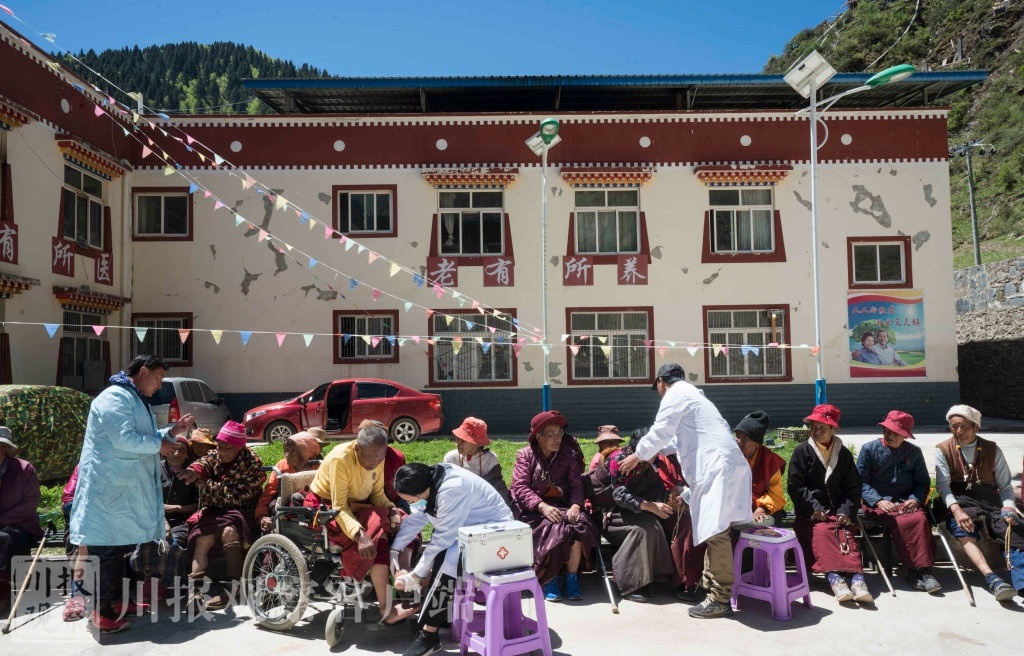 2018年5月23日拍摄的在茸木达乡敬老院里,在医生的精心治疗下这里的休养老人病痛减轻了,患有Ⅲ度大骨节病老人们在这里吃得好、住得好,生活很幸福。记者 尹钢 摄