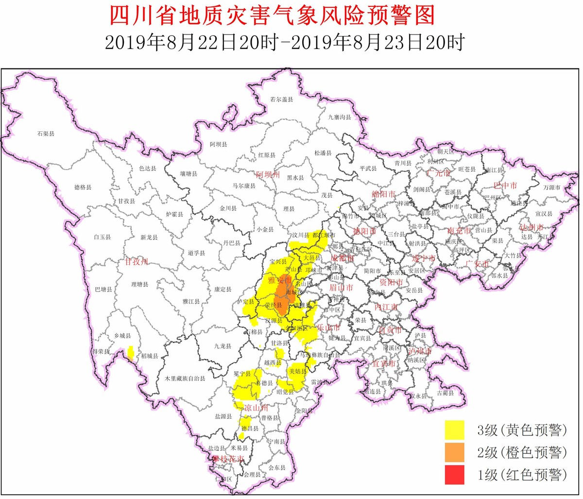 结合四川省气象台天气预报情况,8月22日20时~8月23日20时,全省地质灾害气象风险预警结果如下: